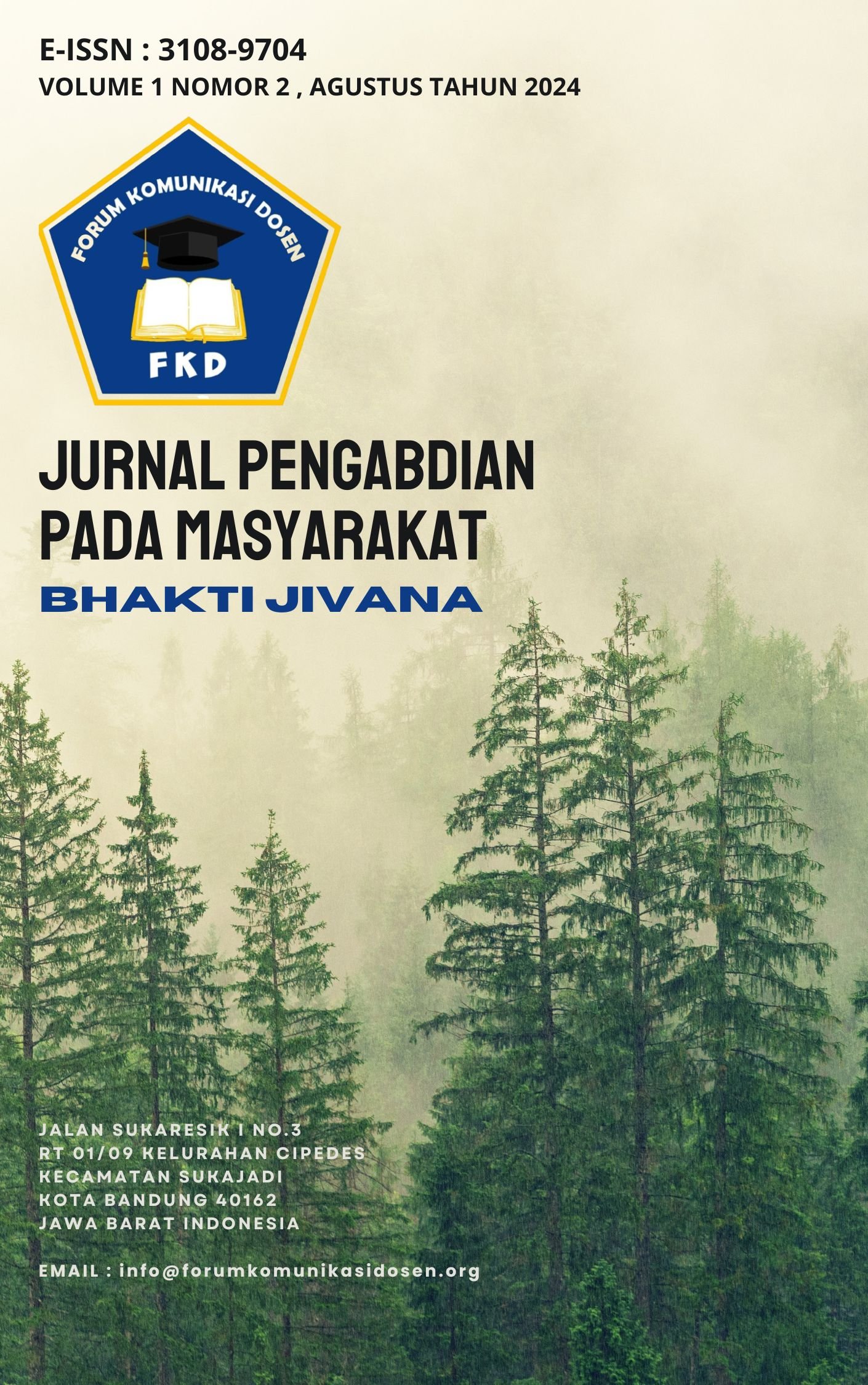 Vol. 1 No. 2 (2024)urnal Pengabdian Pada Masyarakat - BHAKTI JIVANA : Published by Forum Komunikasi Dosen for the first time in April 2024 (e-ISSN : 3108-9704, p-ISSN : xxxxxx). This scientific journal contains scientific papers for the social sciences and humanities.
