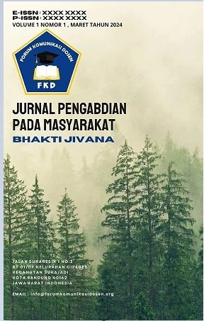 Vol. 1 No. 3 (2024)Jurnal Pengabdian Pada Masyarakat - BHAKTI JIVANA : Published by Forum Komunikasi Dosen for the first time in April 2024 (e-ISSN : xxxxxx, p-ISSN : xxxxxx). This scientific journal contains scientific papers for the social sciences and humanities.